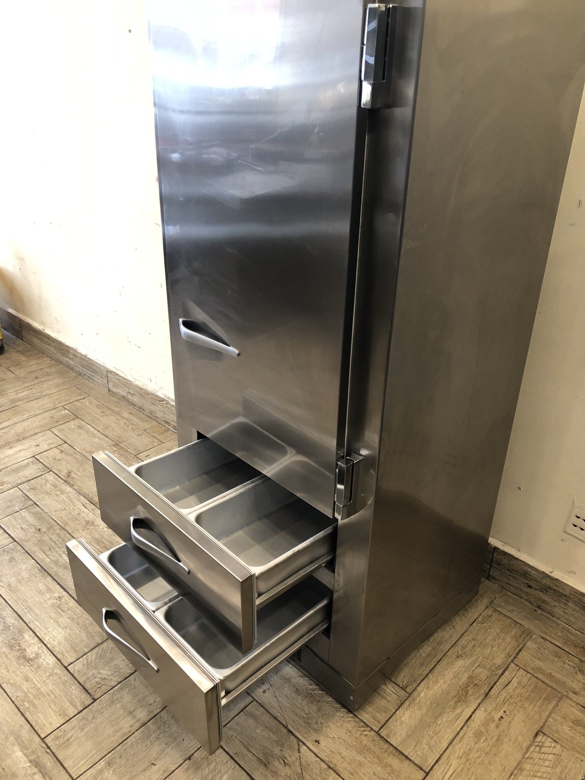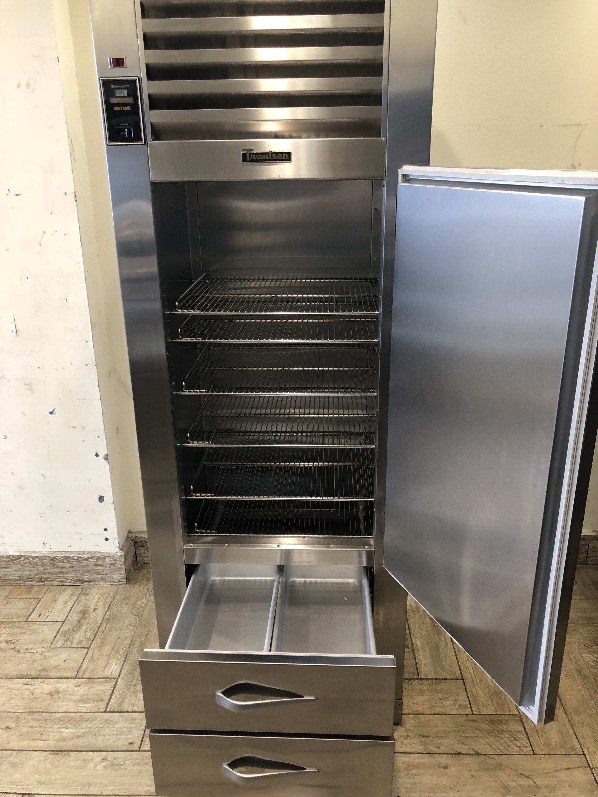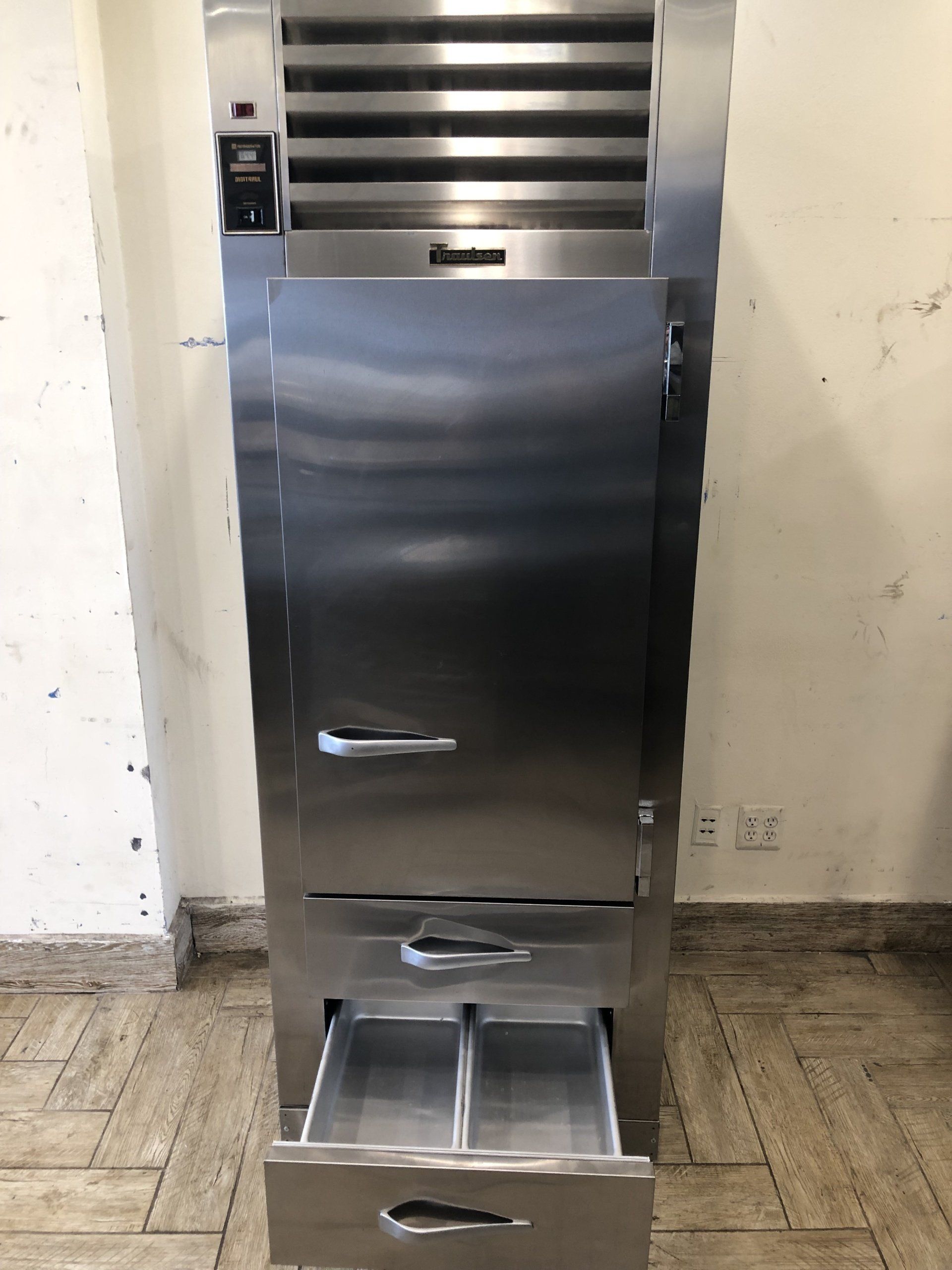 Traulsen UR30HT 30" 3/4 Solid Door 1-Section Spacesaver Refrigerator. This 1-section, reach-in spacesaver refrigerator features one 3/4-length solid door with two drawers underneath and the stainless steel interior and exterior of the UR-Series line. It is designed to have a minimal footprint, for use in spaces where you need a refrigerator that is both shallow and narrow. This unit has balanced, self-contained refrigeration using R-134a refrigerant.1 Section 3 Standard Chrome-Plated Shelves (1) 3/4 Length Solid Door + 2 Bottom Drawers Left Door Hinges S/S Exterior and Interior Narrow and Shallow Footprint Self-Contained Refrigeration Refrigerant: R-134a Electrical Specs: 115V, 60Hz.